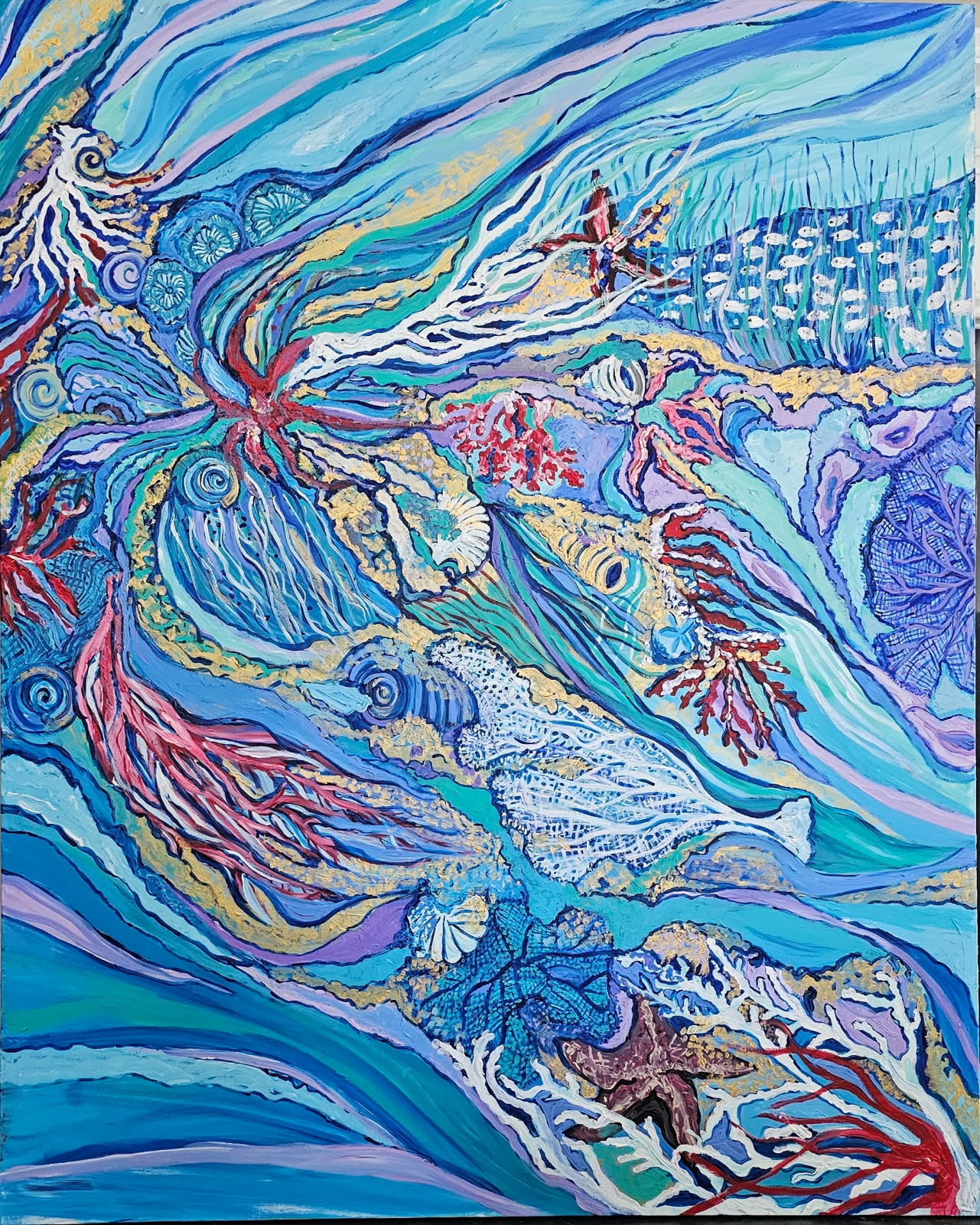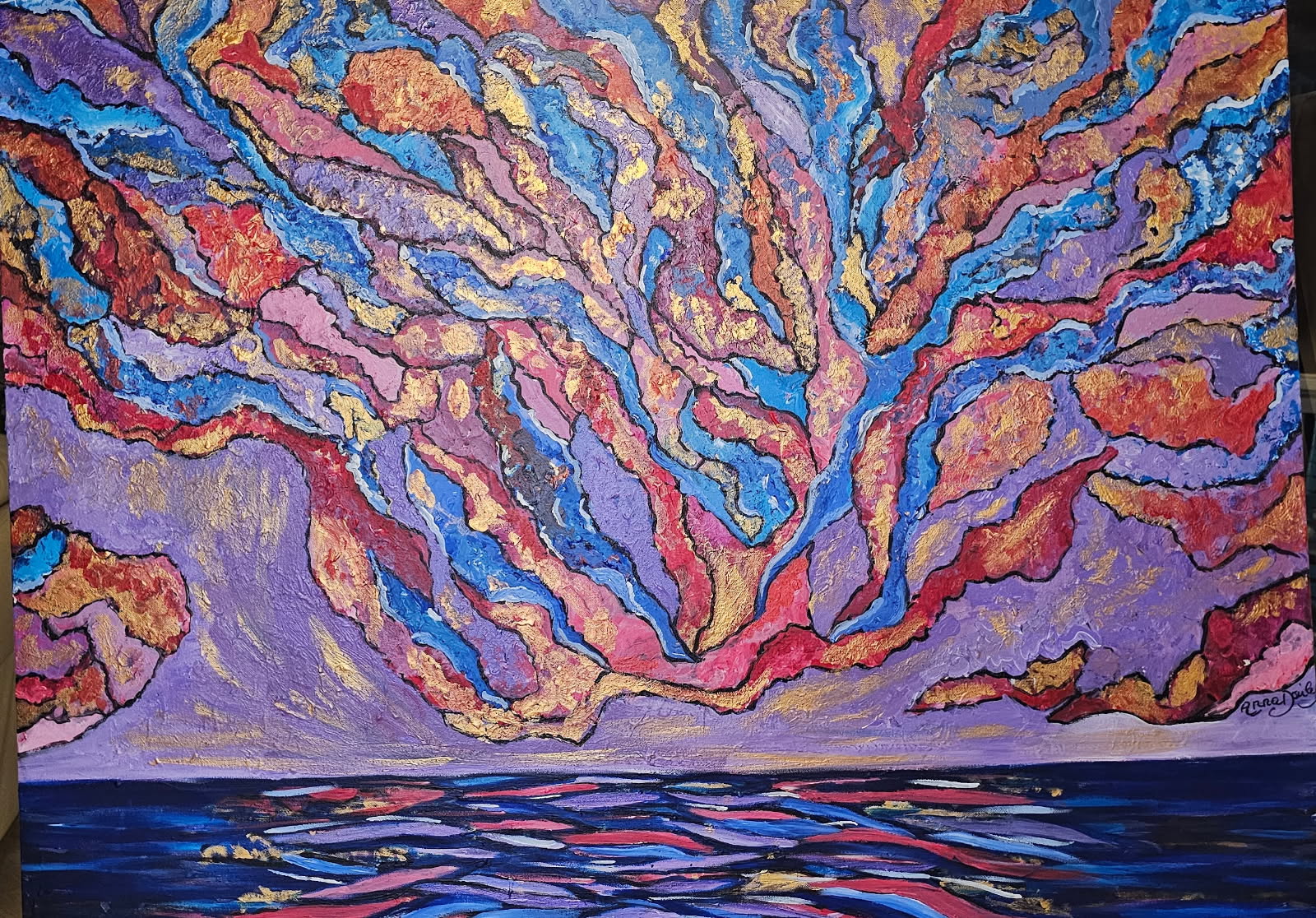 As I paint, my primary concern is to engage the viewer in “self discovery” and to communicate the empowering messages of joy, gratitude, optimism, and beauty, thus leaving the viewer energized. I believe art-painting can be an agent of change in addition to an aesthetic experience.